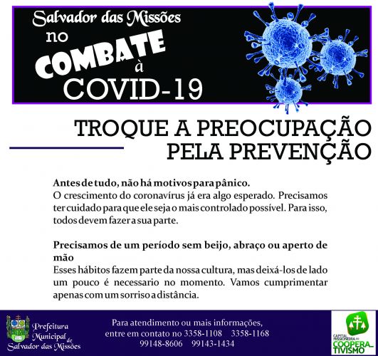 Troque a preocupação pela prevenção! TODOS JUNTOS CONTRA O CORONAVÍRUS