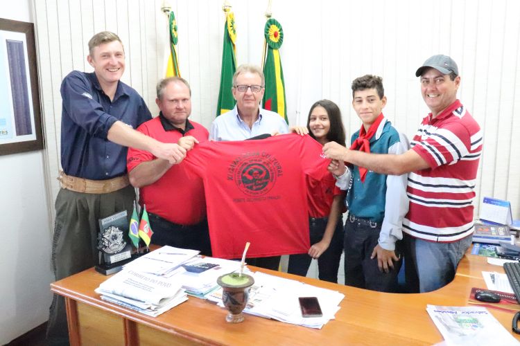 Na manhã do dia 11 de fevereiro de 2020, o Prefeito Daniel Gorski recebeu em seu gabinete a visita de integrantes do Piquete Estância da Tradição que estiveram presenteando o Prefeito com a camiseta da cavalgada em agradecimento ao apoio e parceria da prefeitura, na cedência do transporte para a locomoção dos cavalos e participantes até São Luiz Gonzaga como também durante o percurso até Bosssoroca.