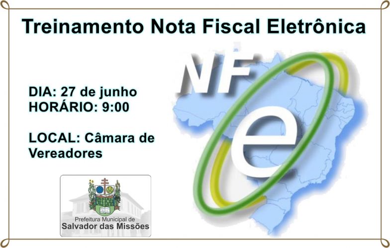 No dia 27 DE JUNHO ÀS 9 HORAS, será realizado o treinamento para operacionalização do sistema de cadastramento, emissão e armazenamento de notas fiscais eletrônicas no município de Salvador das Missões.