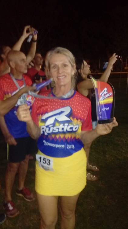 Já no domingo, Maria Noeli Klein, esteve participando da Rústica Decorpore na cidade de São Luiz Gonzaga, onde também conquistou o 1º lugar no pódio em sua categoria.