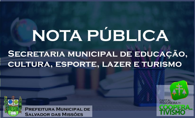 Seguindo as orientações da Federação das Associações dos Municípios do Rio Grande do Sul (Famurs), da União Nacional dos Dirigentes Municipais de Educação (Undime/RS) e da União Nacional dos Conselhos Municipais de Educação do Rio Grande do Sul (Uncme-RS) informamos que, nas escolas municipais de Salvador das Missões, a recuperação das aulas será, dentro do possível, presencial.