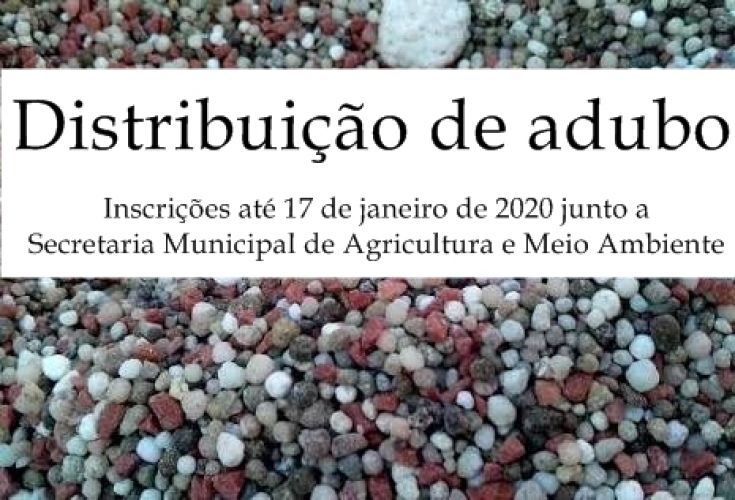 A Secretaria Municipal de Agricultura e Meio Ambiente comunica que estão abertas as inscrições para cadastramento de produtores para serem beneficiados com a distribuição de adubo, sendo que o município foi beneficiado com recurso da Consulta Popular 2017/2018 e com contrapartida de recursos próprios foram adquiridos 1190 sacos.