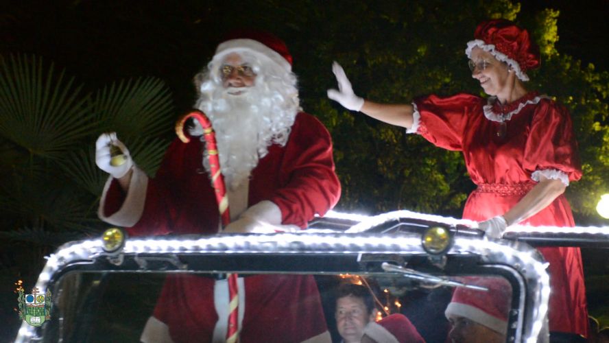 Posterior ao curto protocolo, as crianças foram convidadas à cantar e chamar o Papai Noel, figura mais esperada do evento. Após alguns minutos de treino, o canto foi alto o suficiente para chamar atenção do Bom Velhinho, que chegou em um carro todo iluminado, provocando um largo sorriso no rosto do pequeno público. Que felicidade! Para as crianças, pois estavam mais próximas de receber os doces e presentes, e para o próprio Papai Noel, pelos vários abraços apertados e cheios de emoção.
