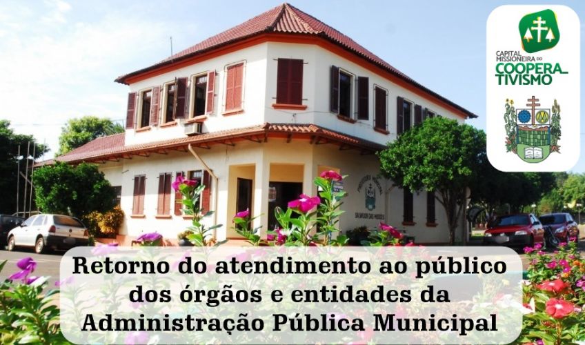 Fica estabelecido, pelo Decreto Municipal nº 084, que o atendimento ao público na Prefeitura Municipal fica restrito a duas pessoas por vez. Aos que estiverem na área externa aguardando o atendimento, deverão manter uma distância de, no mínimo, 2 metros entre cada pessoa.
