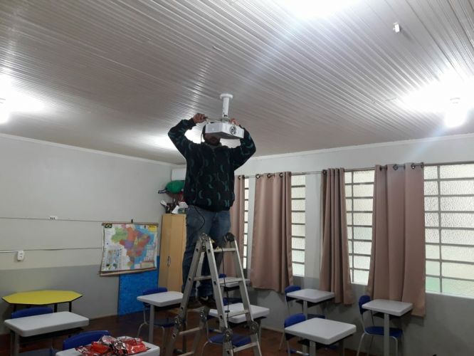 Está sendo realizada nessa semana a instalação de novos equipamentos para sete salas de aula da Escola Municipal Padre Afonso Rodrigues, da Vila Santa Catarina. Os novos projetores de áudio e vídeo servirão de mais uma ferramenta de ensino e aprendizagem para alunos e professores da escola, incentivando a dinamização da ação de lecionar e ainda outras atividades para a formação dos alunos.