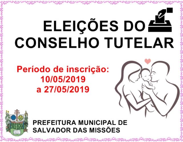 O CONSELHO MUNICIPAL DOS DIREITOS DA CRIANÇA E DO ADOLESCENTE (COMDICA) do Município de Salvador das Missões comunica que estão abertas as inscrições para membros titulares e suplentes do Conselho Tutelar.