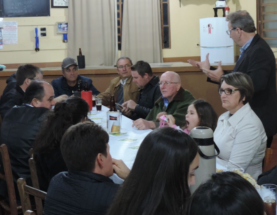Posteriormente, aconteceu uma janta na Sociedade 05 de julho na Esquina Faxinal. Na oportunidade o Deputado Marcon selou um novo compromisso na entrega do ofício de mais uma emenda para esse ano, que será destinada para custeio da atenção básica da saúde, no valor de R$ 184.000,00. Esse recurso é mais uma conquista do Vereador Julci Luft.