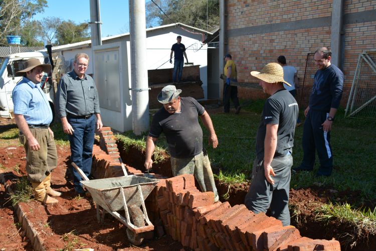 Continuam as obras de melhoramento da estrutura da Escola Municipal Padre Afonso Rodrigues da Vila Santa Catarina. No momento está em andamento a construção de um muro no exterior da escola, em divisa com a rua.