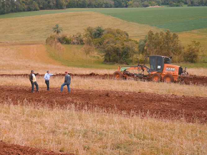 Através da assistência técnica da Emater, foram demarcados os terraços em nível em uma coxilha de 9 hectares. A construção dos terraços foi então realizada pela Prefeitura Municipal, com os com equipamentos da secretaria de obras.
