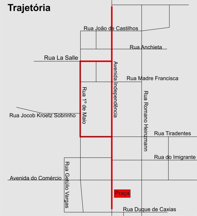 A Secretaria Municipal da Educação, Cultura, Esporte, Lazer e Turismo comunica que, em virtude da Rústica, a Avenida Independência e a Rua 1º de Maio (trecho entre a Rua La Salle Rua Tiradentes) estará fechada a partir das 14:00.