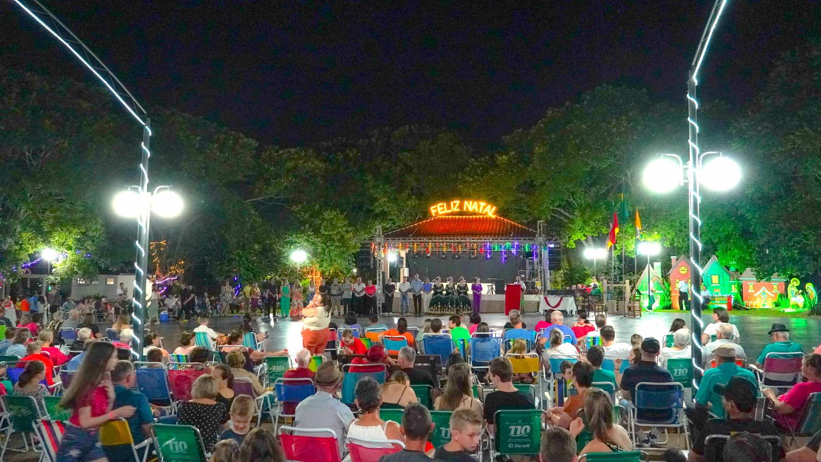 As luzes por toda cidade, a decoração da praça criaram um cenário mágico que envolveu todos os presentes, transportando-os para um universo natalino único. O evento foi um verdadeiro sucesso, reunindo um número expressivo de participantes que vieram prestigiar e celebrar a temporada mais especial do ano, que foi encerrada com um verdadeiro espetáculo do grupo Sol Maior, que com músicas natalinas, lindas performances e uma simpatia inigualável, emocionou crianças e adultos, que dançaram e cantaram junto durante todo o show.