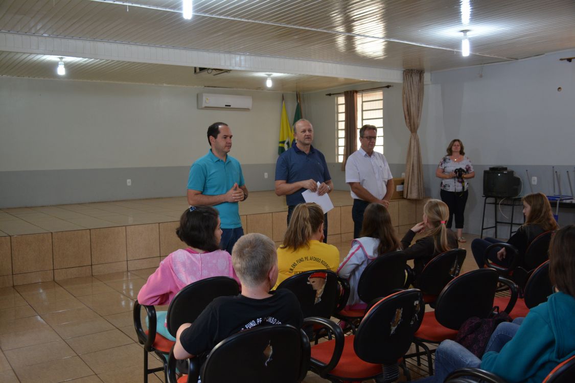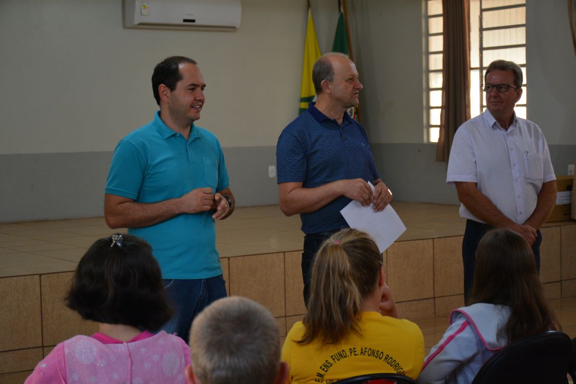 O Prefeito Daniel Gorski e Secretário da Educação Jarbas de Almeida Lenz se fizeram presentes no primeiro dia de aula dos alunos do Pré A ao 9º ano, dando suas boas vindas a todos e aproveitando para explicar aos educandos o trabalho realizado nas férias.