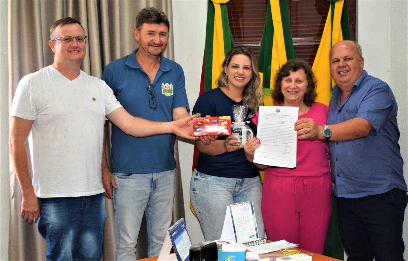 O Prefeito Vilson Schons recebeu em seu gabinete na manhã desta segunda-feira, dia 2 de janeiro de 2023, a Servidora Municipal IVETE MARIA KREIN, que nesta data recebeu a Portaria 120/2022, que lhe concedeu APOSENTADORIA por tempo de contribuição.