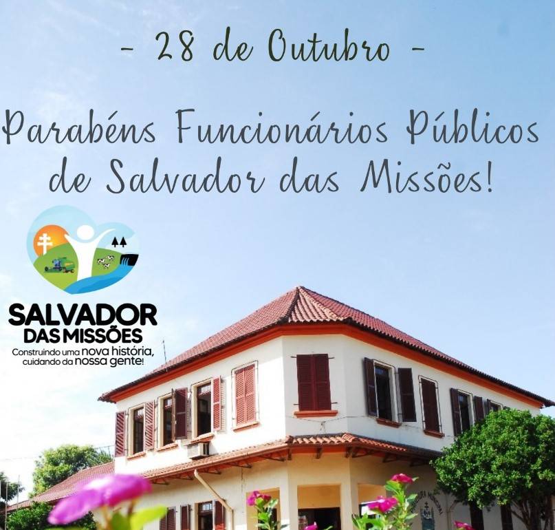 A Administração Municipal presta homenagem a todos os servidores públicos de Salvador das Missões, comemorado nesta próxima quinta-feira, dia 28 de outubro. O Chefe do Poder Executivo declara que o dia é dedicado aos funcionários públicos, que desempenham um trabalho de grande importância, por estarem sempre a serviço da sociedade, atendendo as pessoas, no seu trabalho todos os dias.