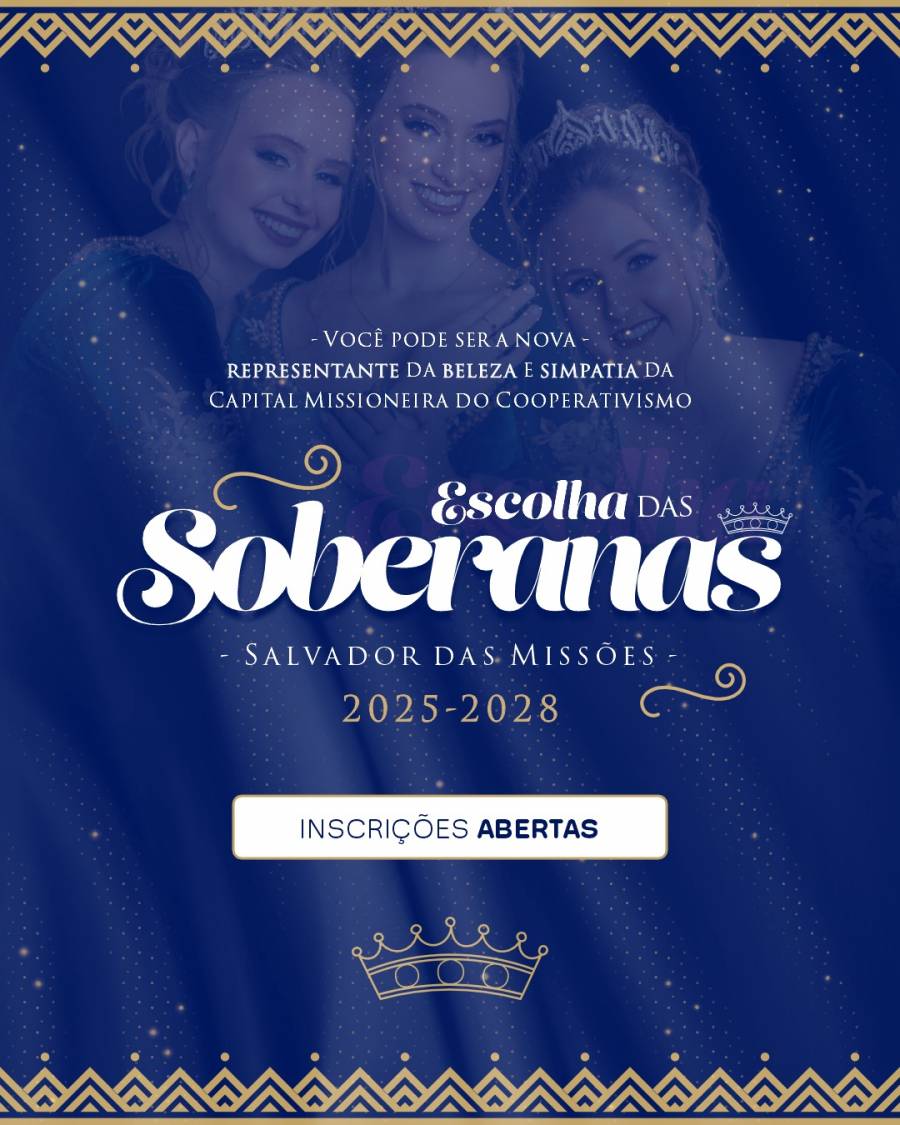 Estão abertas as inscrições para o concurso que vai escolher as novas Soberanas do Município de Salvador das Missões, para os anos de 2025/2028.