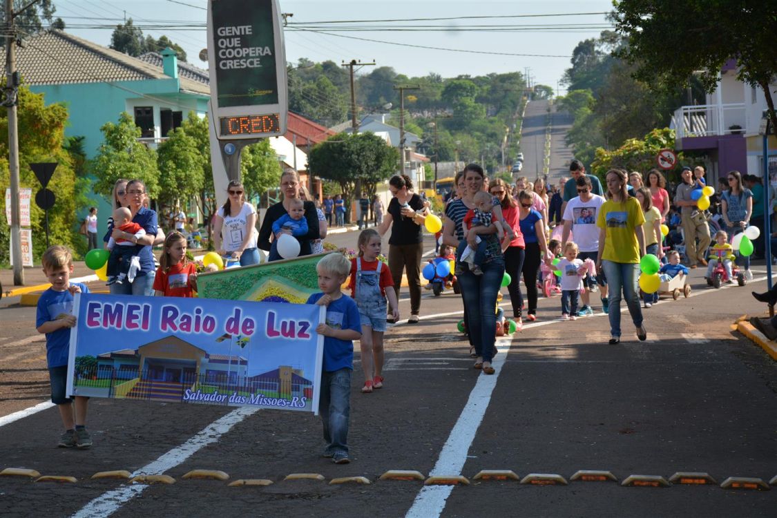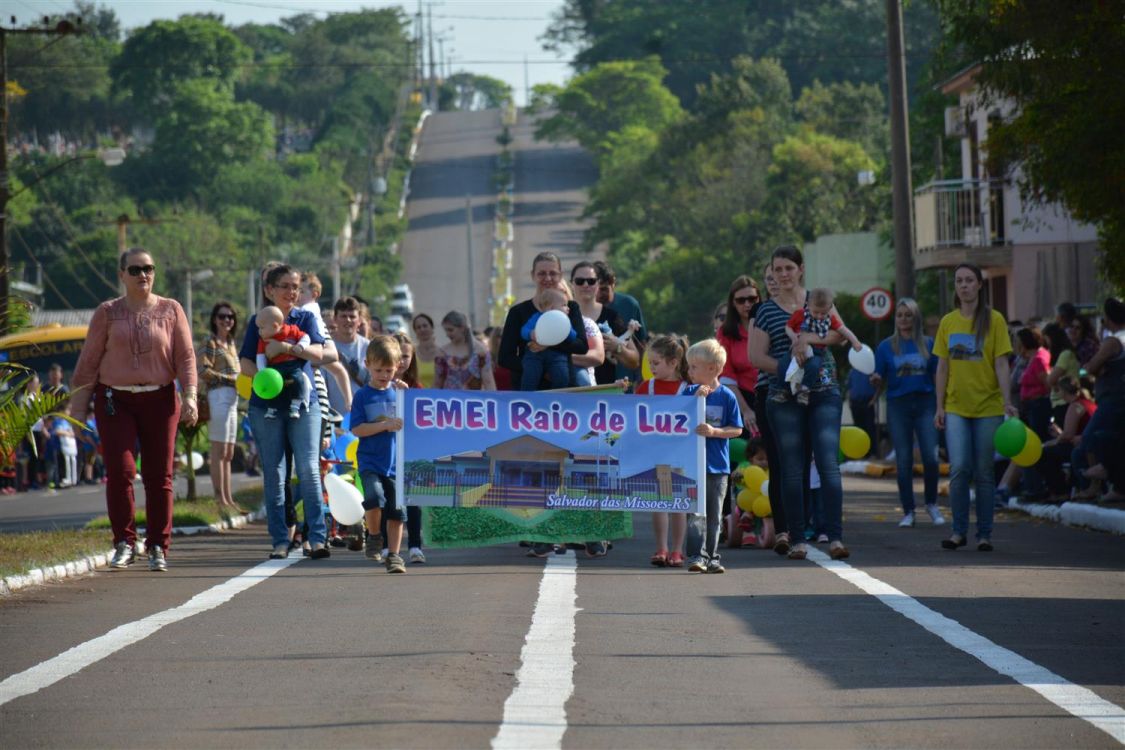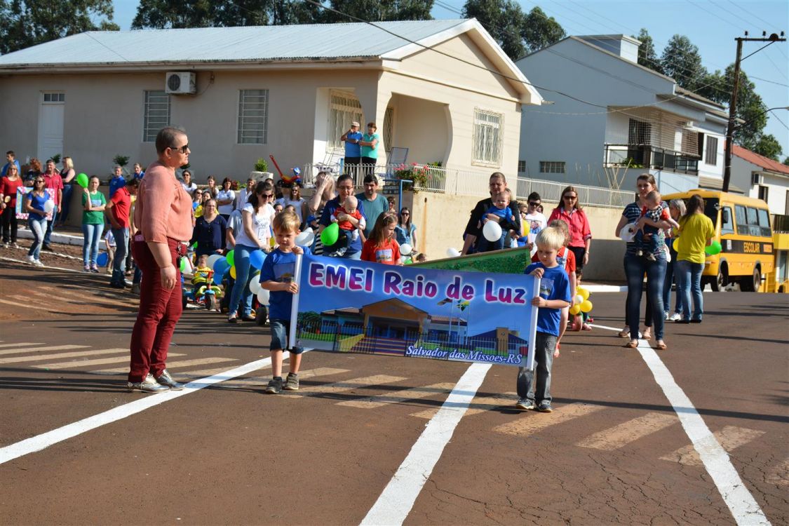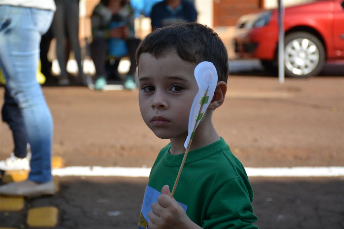 A Escola Municipal de Educação Infantil Raio de Luz foi a próxima participante, onde participaram do pelotão as crianças de todas as idades, algumas acompanhadas dos seus pais. O grupo foi dividido em 4 pelotões, sendo que cada um trouxe a sua mensagem.