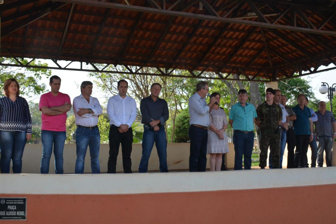 Com a formação do Palanque Oficial, o prefeito Daniel Gorski agradeceu a todos os presentes, lembrando da importância desse ato cívico, no sentido de que devemos ter amos à nossa pátria, mesmo com todos os problemas que hoje se apresentam em seus órgãos superiores de gestão. Para Gorski, deverá partir da população o anseio de mudar este cenário, e só a partir dos movimentos do povo que o triste cenário hoje encontrado, poderá dar espaço para novos tempos, com menos violência e corrupção. O prefeito aproveitou ainda para agradecer aos munícipes pela participação no evento da Liga de Combate ao Câncer, ocorrido na noite da quarta-feira, onde estiveram presentes mais de 650 pessoas no jantar. Aproveitou também para lembrar dos 25 anos que Salvador das Missões completa neste dia 10 de novembro, o que ficará marcado com a realização da Festa do imigrante.