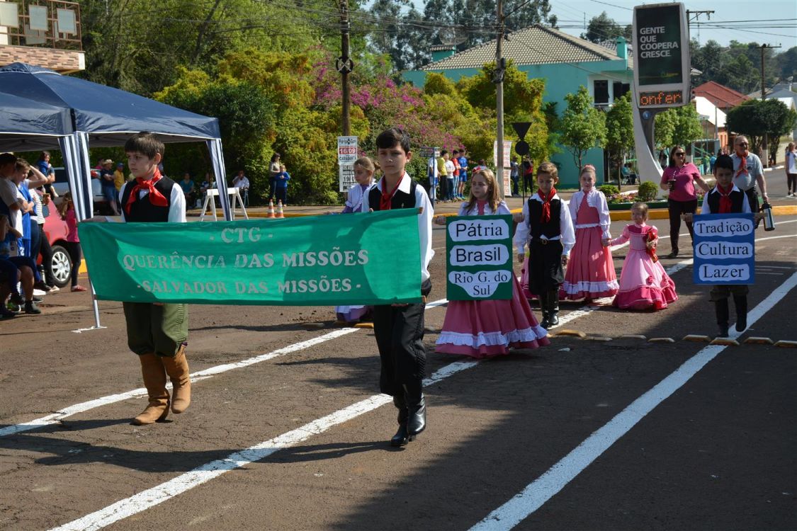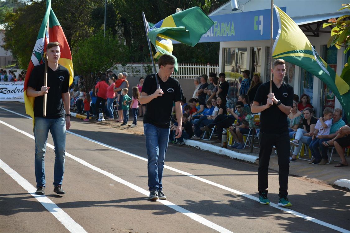 O pelotão da Escola Municipal Padre Afonso Rodrigues veio logo em seguida. Fundada em 1909, tem em seus registros aproximadamente 120 educadores e mais de 1650 alunos. Atualmente, 92 alunos estão matriculados, do 1º ao 9º ano, sob orientação e cuidados de 13 professoras, 4 funcionários e do Diretor Emir Miguel Konzen.