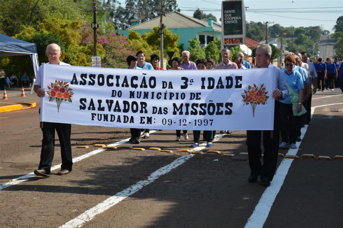 Seguindo o desfile, as Soberanas do Município vieram trazendo as três bandeiras, do Brasil, do Rio Grande do Sul e de Salvador das Missões, sendo seguidas das Soberanas da Terceira Idade, sendo estas todas as representantes de todos nós salvadorenses em eventos do município e fora dele.