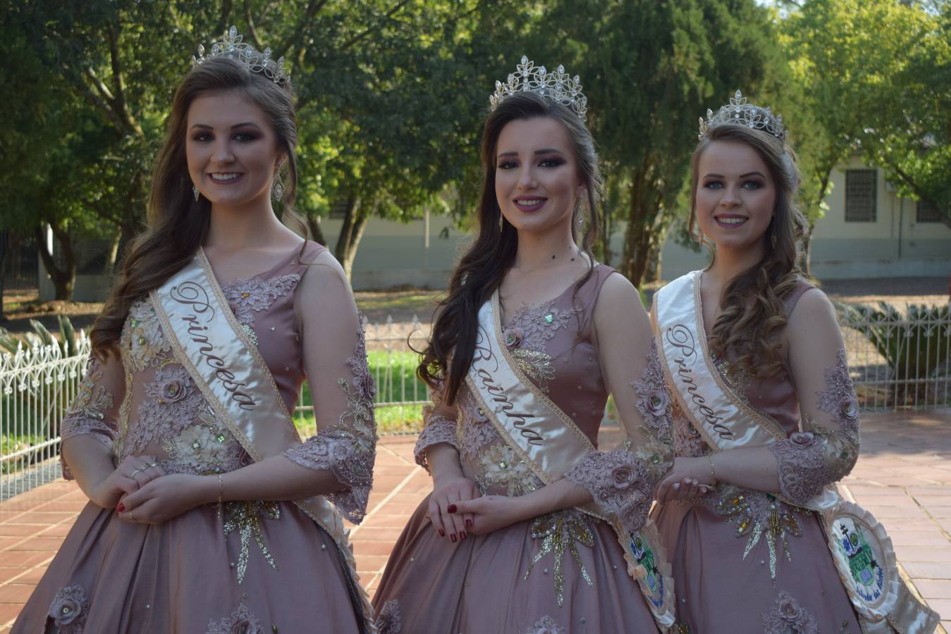 A simpatia e o sorriso das Soberanas do Município de Salvador das Missões, Rainha Taíssa Dewes e Pricesas Jordana Konzen e Larissa Schons.