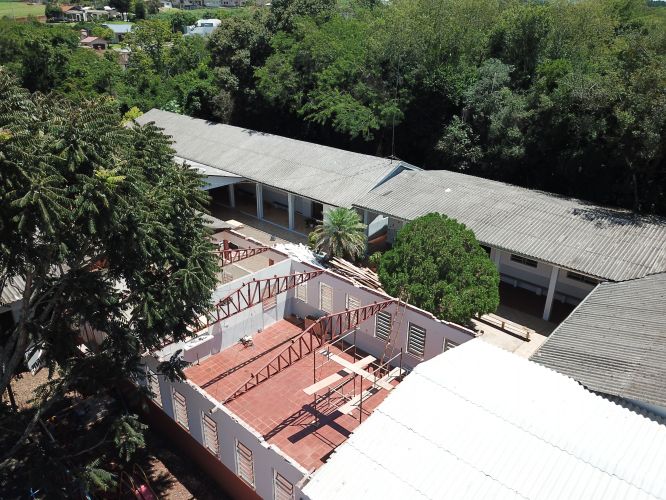 Os trabalhos mais intensos estão voltados agora para a Escola Padre Afonso Rodrigues, que além da nova pintura externa, os acabamentos na nova sala de aula construída, também passa por reformas no telhado de um dos pavimentos, o qual terá uma cobertura toda nova.