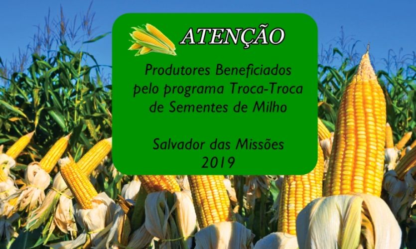 A Secretaria da Agricultura e Meio Ambiente comunica que o pagamento da semente de milho Troca Troca Safra 2018/2019 Safra Normal tem como prazo até o dia 15 de abril de 2019.