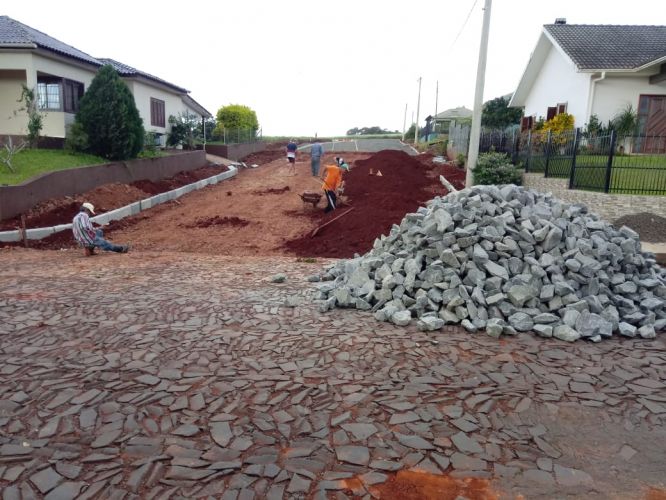 No dia 25 de junho iniciou na Rua Cristiano Heck da Vila Santa Catarina com recursos próprio do município. Outros locais que teremos calçamento será: