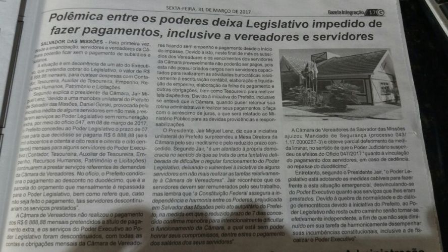 O Poder Executivo de Salvador das Missões esclarece à toda a população que está pautado no devido cumprimento das disposições Constitucionais, em principal do princípio da legalidade, motivo pelo qual foi sanada a irregularidade apontada pelos servidores deste órgão.