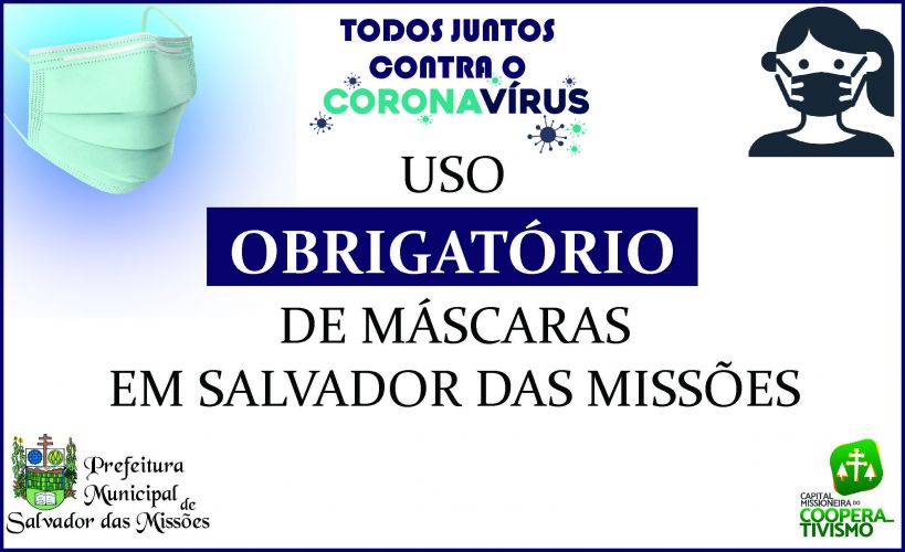 Art. 1º. Passa a ser obrigatório o uso de máscaras de proteção respiratória no interior de estabelecimentos públicos e privados, de qualquer natureza, situados no Município de Salvador das Missões, RS.