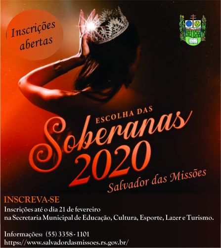 Estão abertas as inscrições para o concurso que vai eleger as novas soberanas do município de Salvador das Missões. As inscrições vão até o dia 21 de fevereiro.