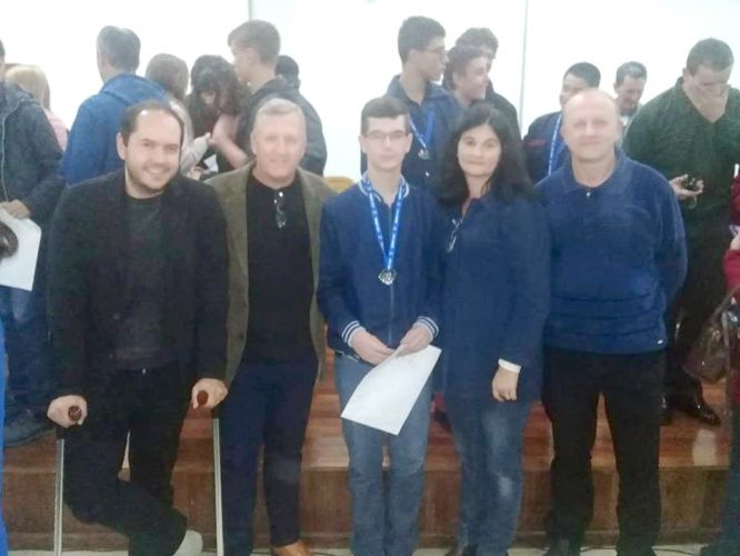 Na última quinta-feira, dia 05 de julho, o Secretário Municipal da Educação Jarbas de Almeida Lenz e o Diretor da Escola Municipal Padre Afonso Rodrigues Emir Konzen, juntamente com o aluno Bruno Henrique Lahm e seus pais Dirce Lucia Becker e Rene José Lahm viajaram até a cidade de Santa Maria onde participaram da Cerimônia de Premiação da Olimpíada Brasileira de Matemática das Escolas Públicas e Privadas, onde o aluno salvadorense recebeu a medalha de prata.