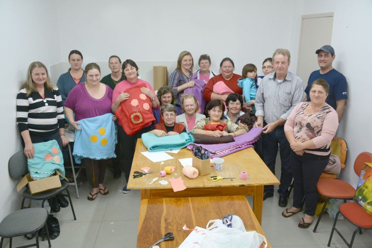 Na oportunidade da visita, as oficineiras trabalhavam na confecção de cobertores.