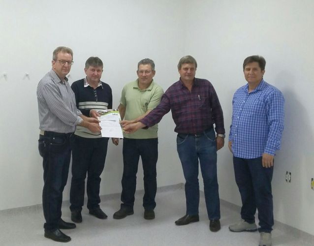 O Prefeito de Salvador das Missões, Daniel Gorski, juntamente com o presidente da Câmara Municipal de Vereadores Jair Miguel Lenz, e o Secretário Municipal da Saúde, Luis Carlos Kotz, entregam um cheque no valor de R$ 20.000,00 para a AHCASA - Associação Hospitalar de Caridade Serro Azul - de Cerro Largo. O valor foi recebido pelo presidente da Associação, Leonardo Terra Leite e pelo representante do Lions Clube Cerro Largo, Sergio Tolfo.
