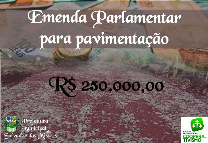 O recurso é do MAPA - Ministério da Agricultura, Pecuária e Abastecimento e será utilizado para pavimentação com pedras irregulares (calçamento) nas estradas do interior.