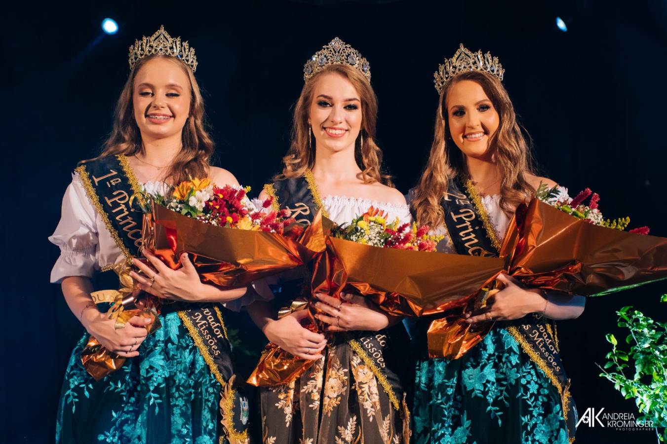 Por fim, foram conhecidas as novas Soberanas de Salvador das Missões, a rainha do Município, somou 90,83 pontos, é Evelin Roberta Schneider. Evelin tem 16 anos, representou a comunidade da Vila Caraguatá, é estudante e aprendiz cooperativo, seu sonho é se tornar uma pessoa bem sucedida, exercendo uma profissão para se sentir uma pessoa realizada na vida pessoal. A mensagem de Evelin aos presentes foi: “A vida é um desafio, é um constante ultrapassar de obstáculos, uma infinita superação de fases. Viver é desafiar o mundo, é se desafiar. Viver é superar, é se reerguer, aprender e esperar o melhor”. A 1ª princesa é Maria Antônia Thiele, que somou 89,83 pontos. Ela tem 15 anos, representou a comunidade de Linha Santo Antônio Baixo, é estudante do 2º ano do ensino médio, seu hobby é se divertir com os amigos e praticar esportes e tem o sonho de cursar medicina veterinária e ser soberana do município, dando mais visibilidade a este mundo fascinante e mostrar que ser soberana é muito mais que uma faixa, é responsabilidade e empatia com o próximo. Maria Antônia, deixou a seguinte mensagem: “O destino não é uma questão de sorte, é uma questão de escolha. Não é algo a se esperar, é algo a se conquistar. Viva o hoje, pois o amanhã é incerto. Mude, cresça e floresça, mas jamais perca sua essência”. A 2ª princesa, obteve 88,63 pontos, é Fernanda Inês Mumbach, ela tem 21 anos, representou o Sindicato dos Trabalhadores Rurais e a comunidade de Linha São José, é estudante de medicina veterinária, seu sonho é formar-se e exercer sua profissão com sucesso e formar uma família feliz. A mensagem que Fernanda deixou a todos: “Lute com determinação, abrace a vida com paixão, perca com classe e vença com ousadia, porque o mundo pertence a quem se atreve e a vida é muito para ser insignificante”.